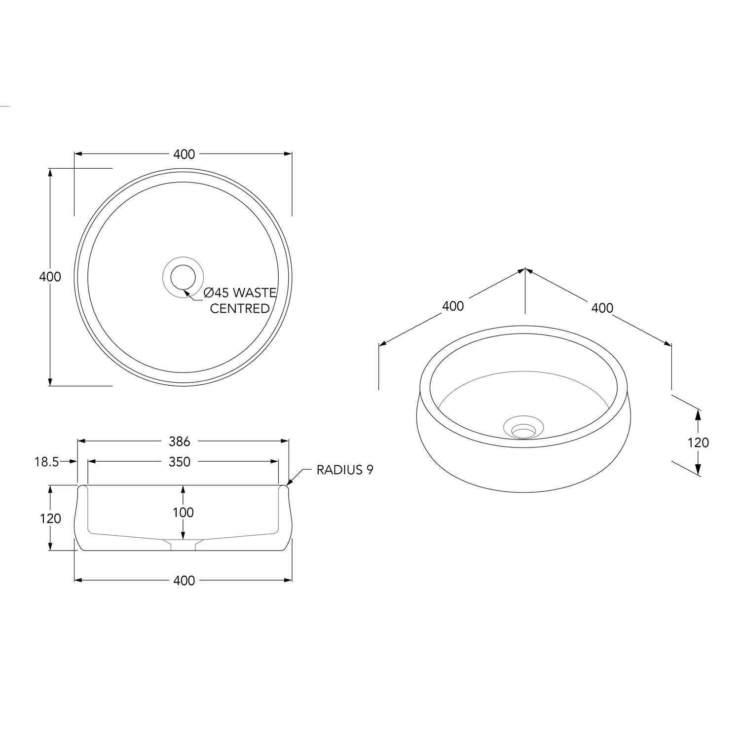 Arlo Natural Stone Above Counter Basin 400mm