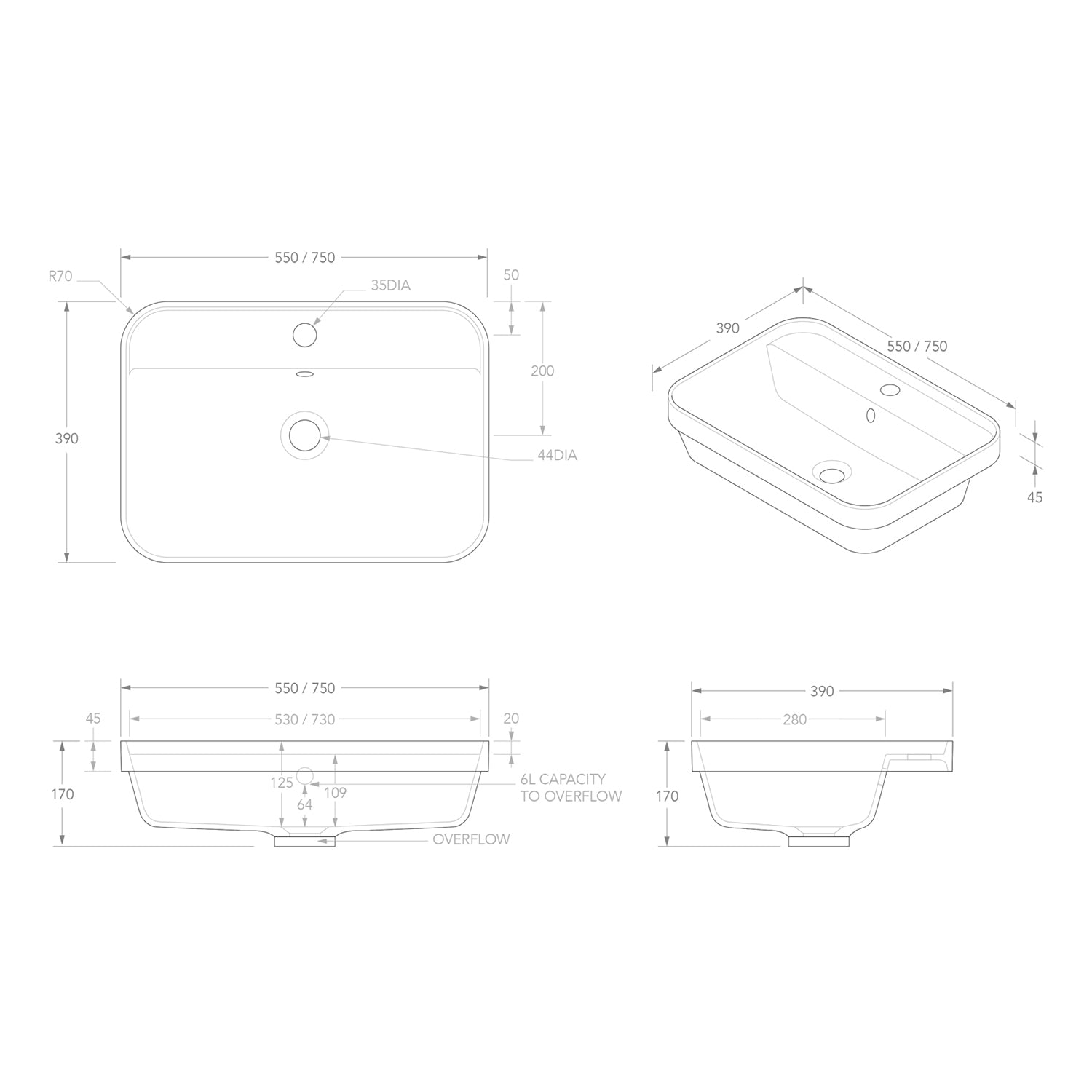 Available in a range of shapes, colours and finishes, they maximise storage inside a vanity cabinet as the basin does not protrude below the benchtop.