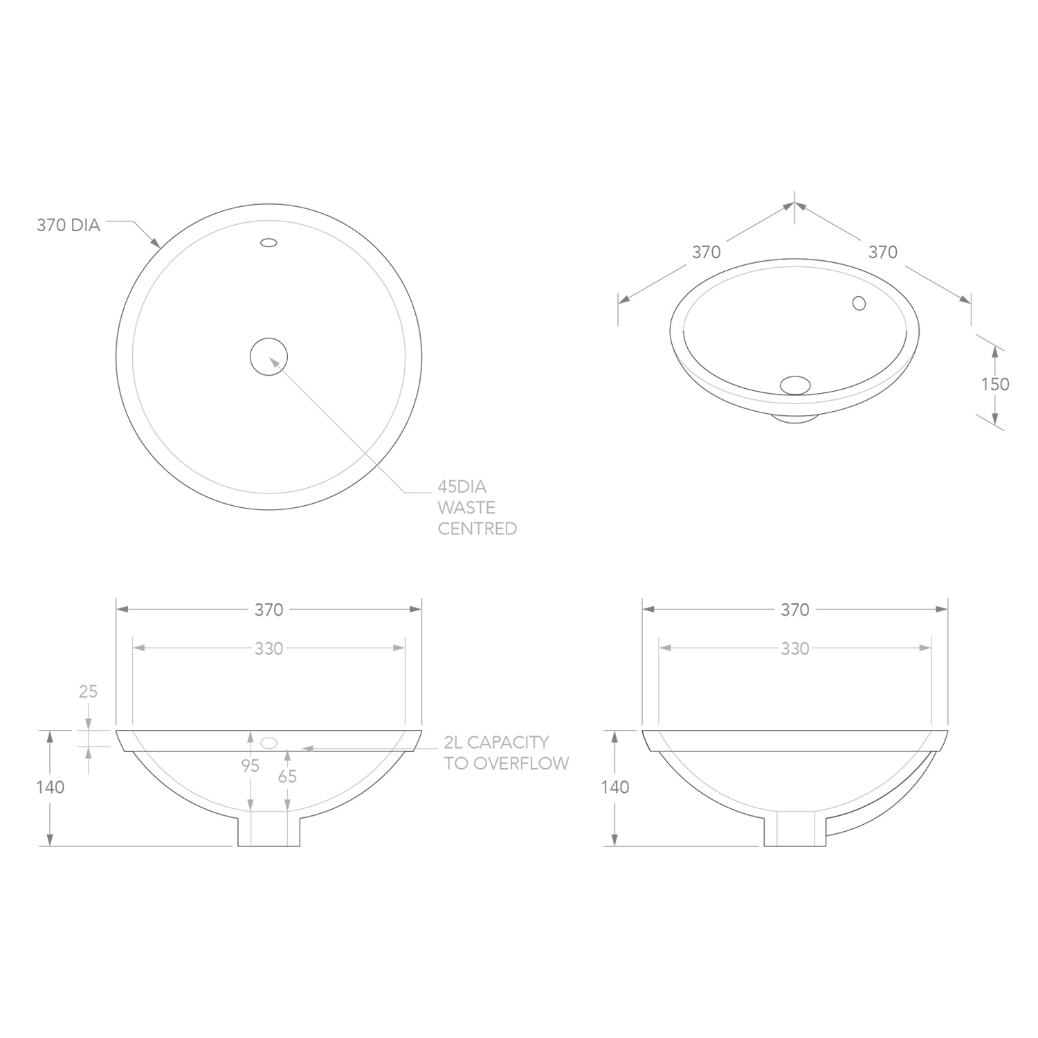 Most Under-Counter basins come with an overflow. Consider tapware selection with your Under-Counter basin – basin mixers should have an extended reach to clear the gap between the tap hole and edge of the basin.
