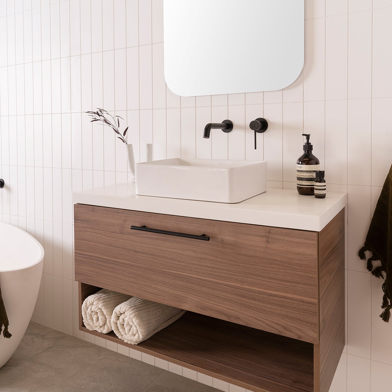 Available in a range of shapes, colours and finishes, they maximise storage inside a vanity cabinet as the basin does not protrude below the benchtop.