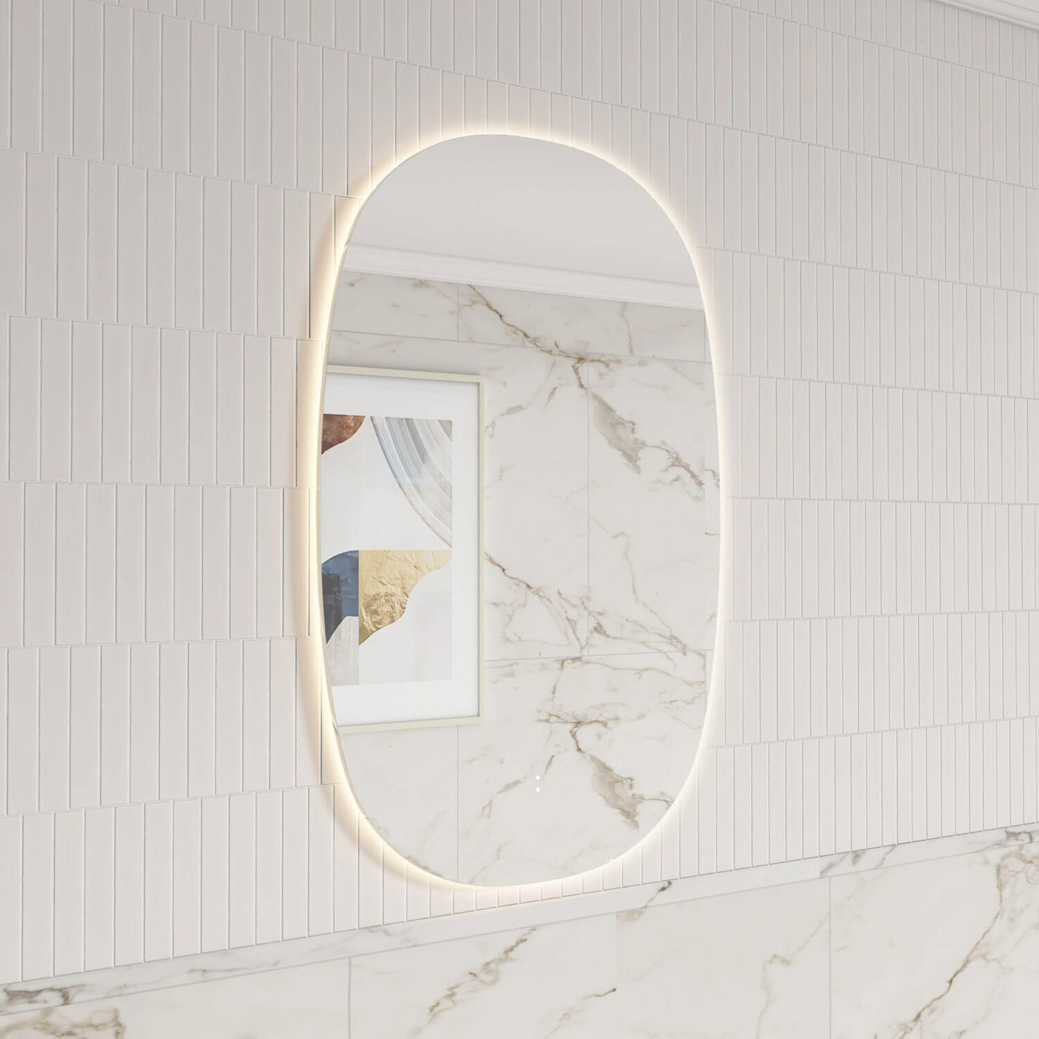 Experience clarity and convenience with the Valmont copper-free vertical mirror featuring an auto demister for a fog-free reflection. Equipped with a touchless sensor and backlit illumination, it offers stepless dimmable lighting to create the perfect ambiance.
