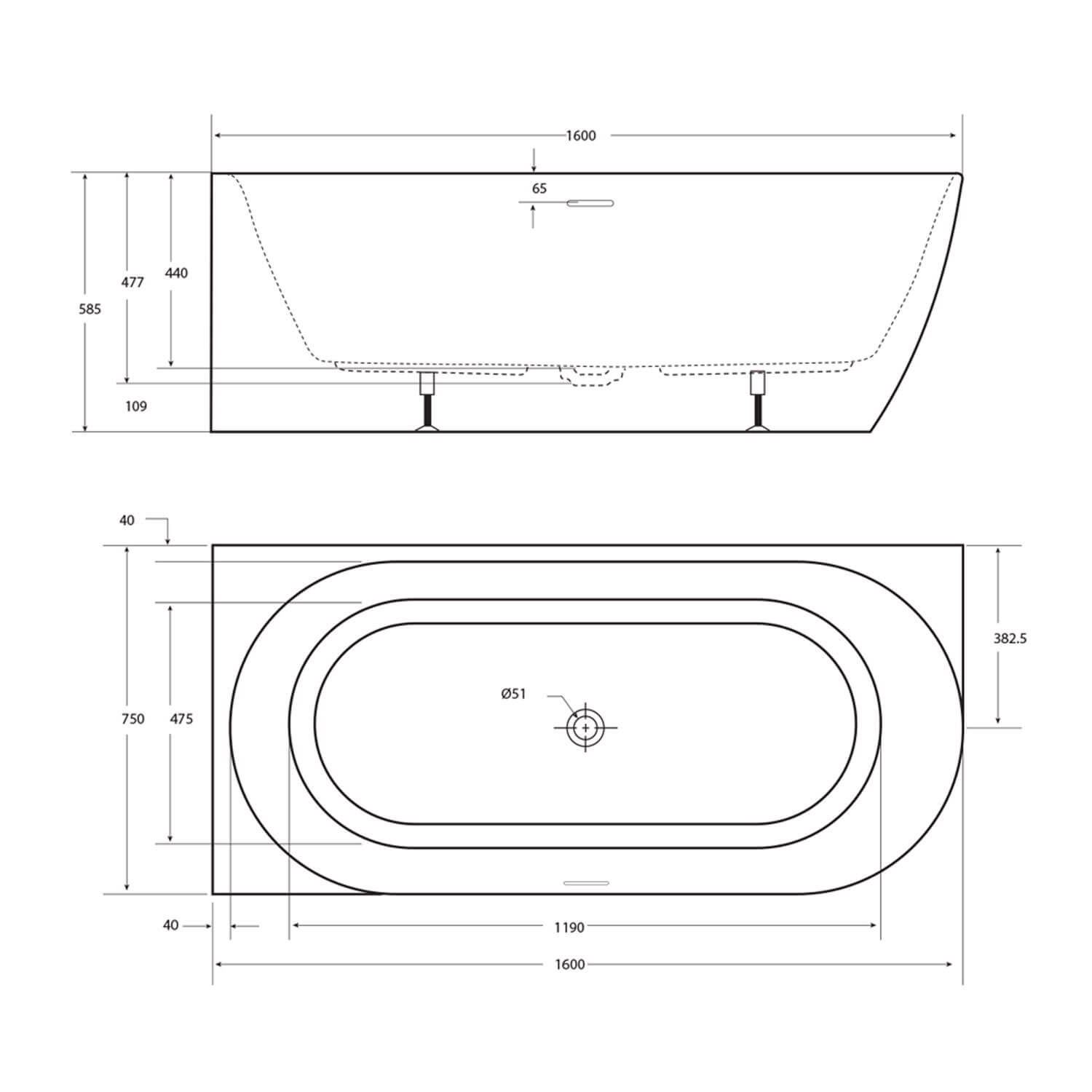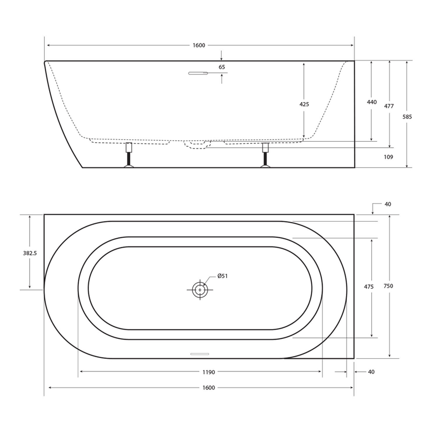 - Size: 1600mm (Length) x 750mm (Width) x 585mm (Height)