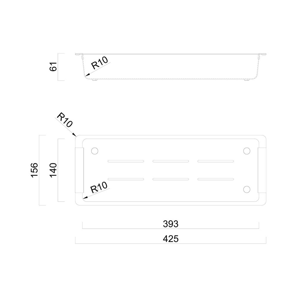 - 156 W x 425mm L (61mm depth)