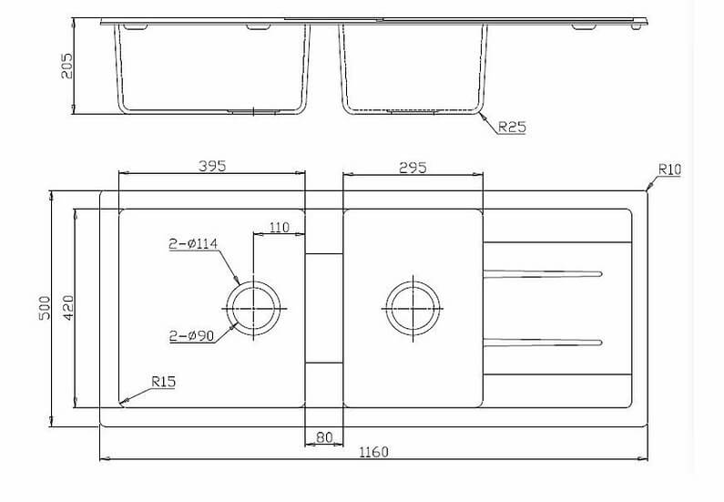 Venus Granite Double Bowl Sink with Drainer 1160x500x205mm