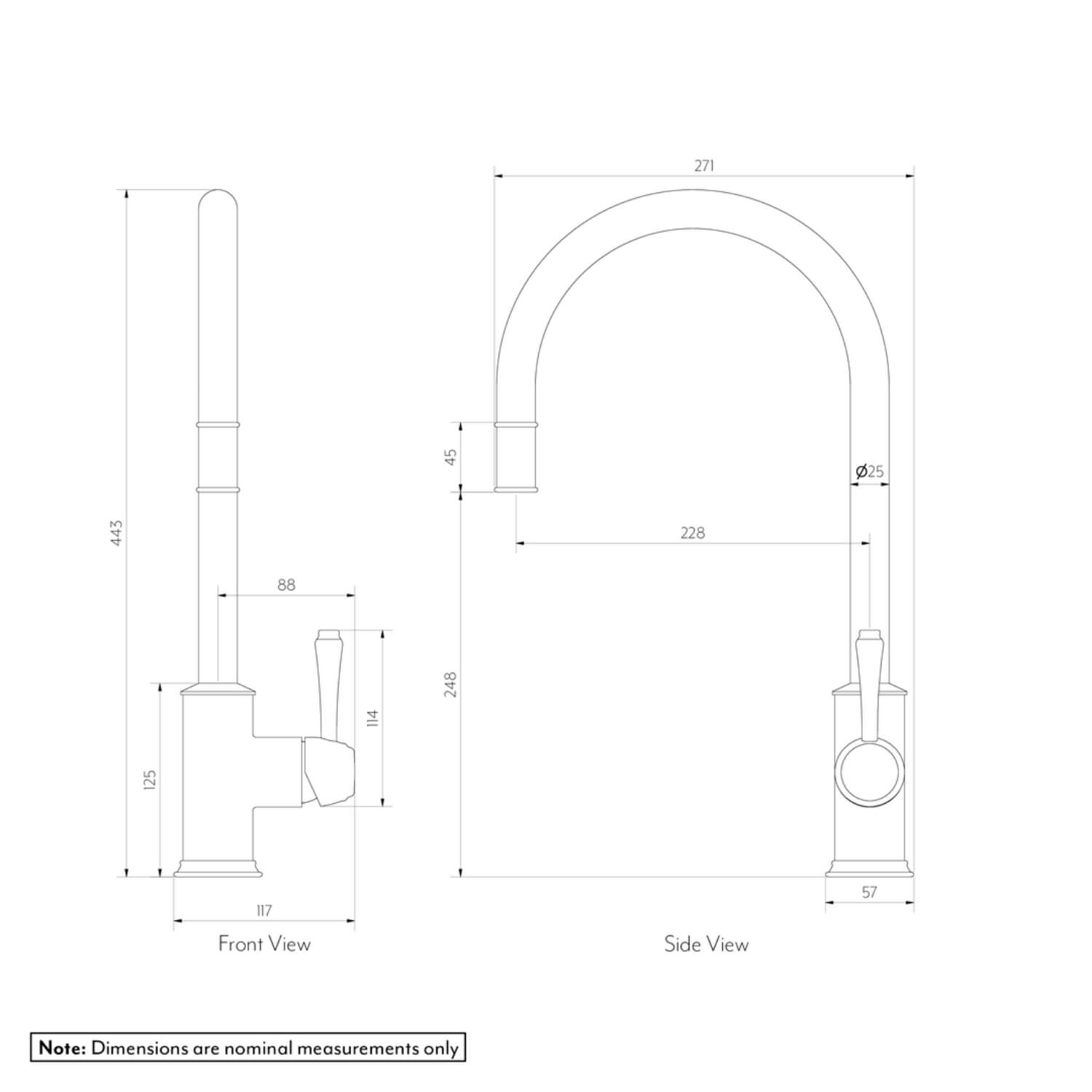 With its elegant provincial design and exceptional functionality, the Kingsley Commercial Pull-Out Kitchen Mixer is a striking centrepiece for classic kitchens.