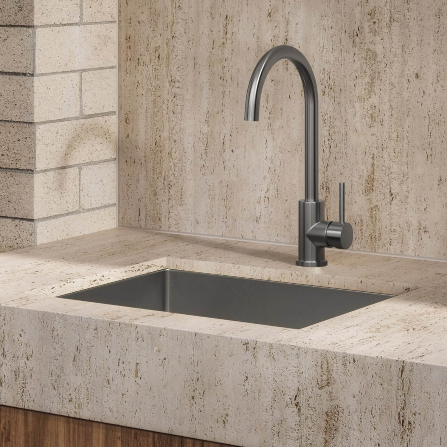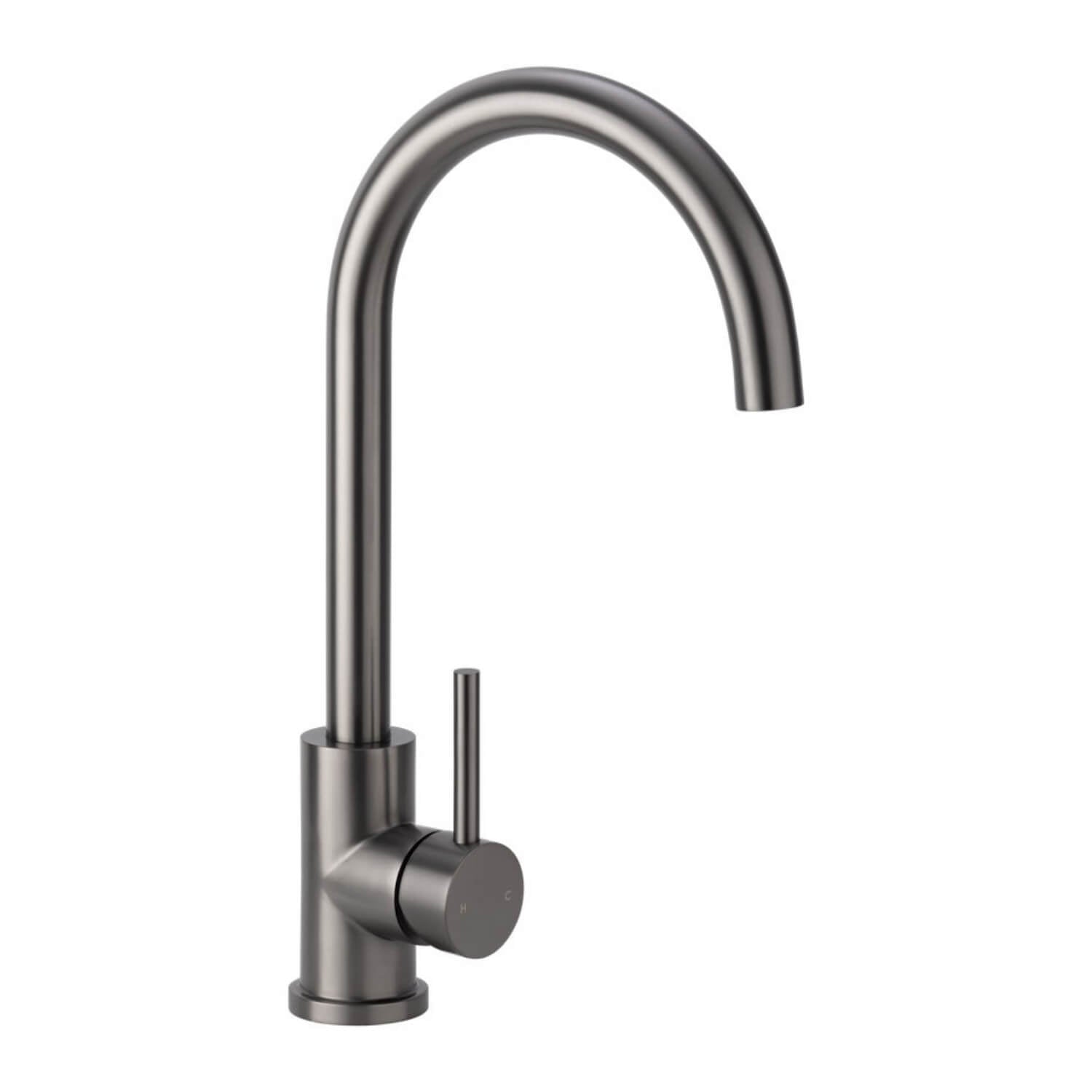 The Sola Kitchen Mixer is available in various appealing finishes, including brushed brass, brushed gunmetal, brushed copper, and stainless steel.