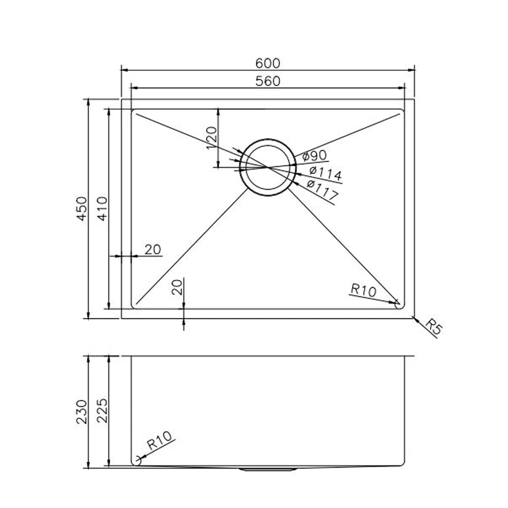 - 225mm Deep (230mm Overall)