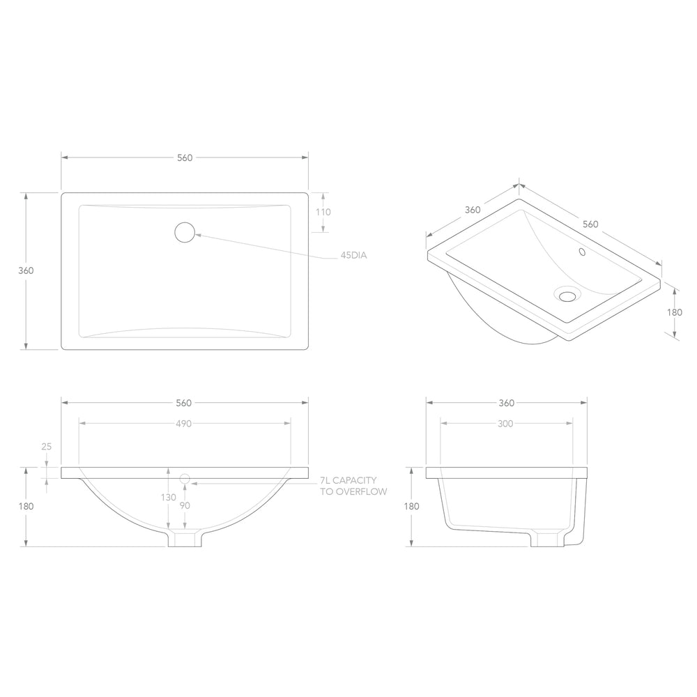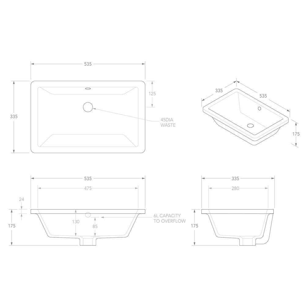 Link Undermount Rectangular Ceramic Basin 540x335mm