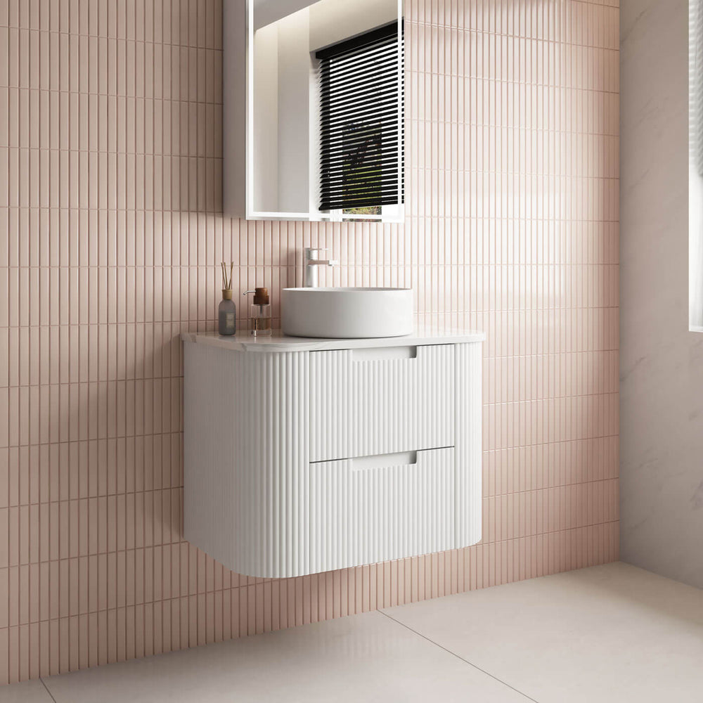 Discover the Curva Vanity, a contemporary masterpiece defined by its elegant curves and iconic fluted exterior panelling. Blending sophistication with functionality, the Curva vanity features dual-level drawers, German Hettich soft-close drawers and a premium plywood construction, embodying the epitome of luxury detail for the bathroom.