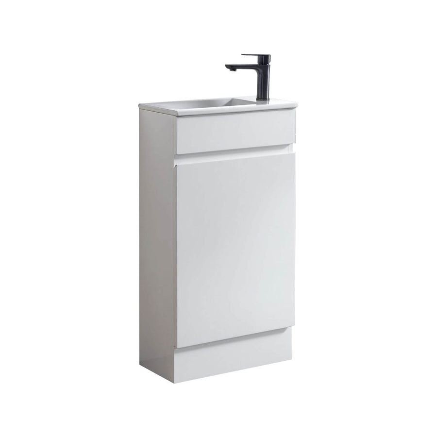 - Reversible, gloss white vitreous china basin-top (no overflow)