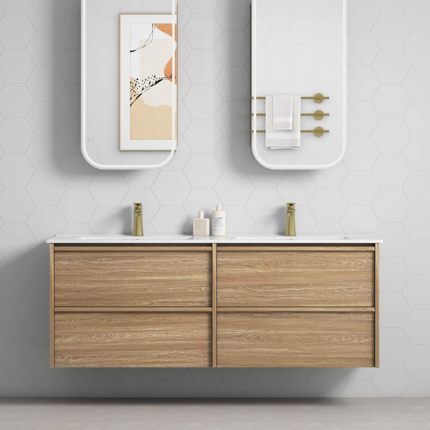 The Venetta all-drawers vanity combines practical storage with timeless design. Crafted from premium-grade, durable plywood, it features a hard-wearing laminate finish that highlights the natural timber grain for a warm, organic aesthetic.
